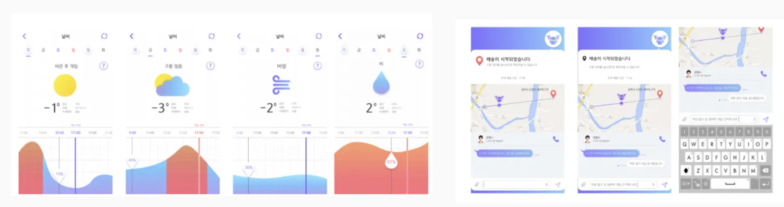 학교에서는 정보디자인 수업을 통해 복잡한 데이터, 정보를 알기 쉽게 시각화하는 방법을 배우고, 인터페이스 디자인 관련 수업에서 생에 첫 애플리케이션 UI / UX 디자인 프로젝트를 해볼 수 있었어요.