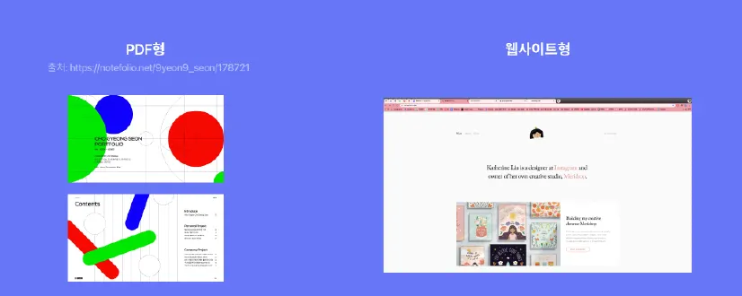 웹사이트형의 장점은 스크롤을 할 수 있으니 한 프로젝트에 대한 장수 제한이 없다는 점, 그리고 GIF / 영상 등을 활용할 수 있다는 점입니다. 생활코딩 등의 사이트를 참고해서 스스로 웹사이트를 구축하는 법을 공부해도 되고, 시간이 없다면 Square Space나 Wordpress 등 템플릿을 제공하는 사이트를 사용하는 것도 방법이에요.